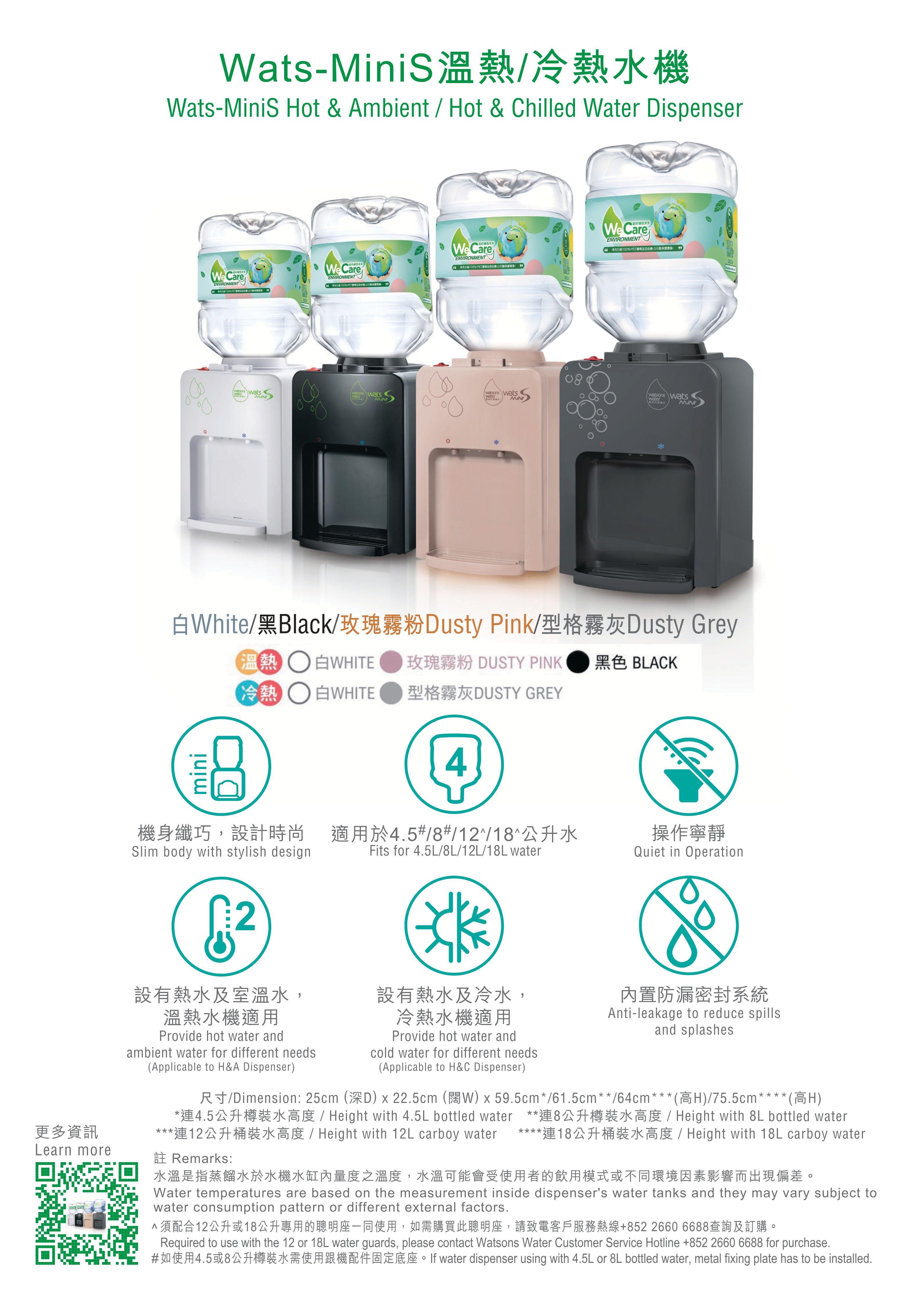 - Required to use with the 12/18.9L water guards, please contact Watsons Water Customer Service Hotline +852 2660 6688 for purchase.