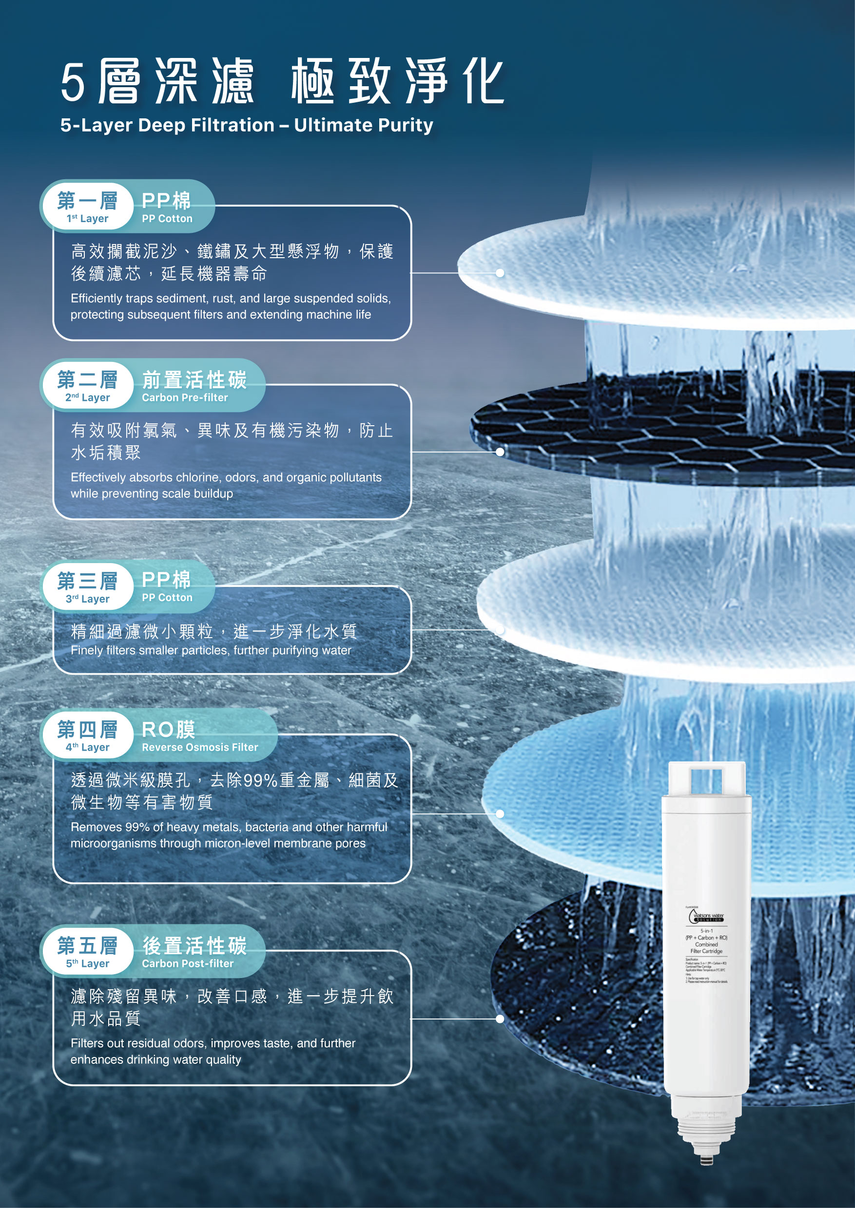 2. 5-Layer Deep Filtration – Effectively filters harmful substances as small as 0.0001 microns