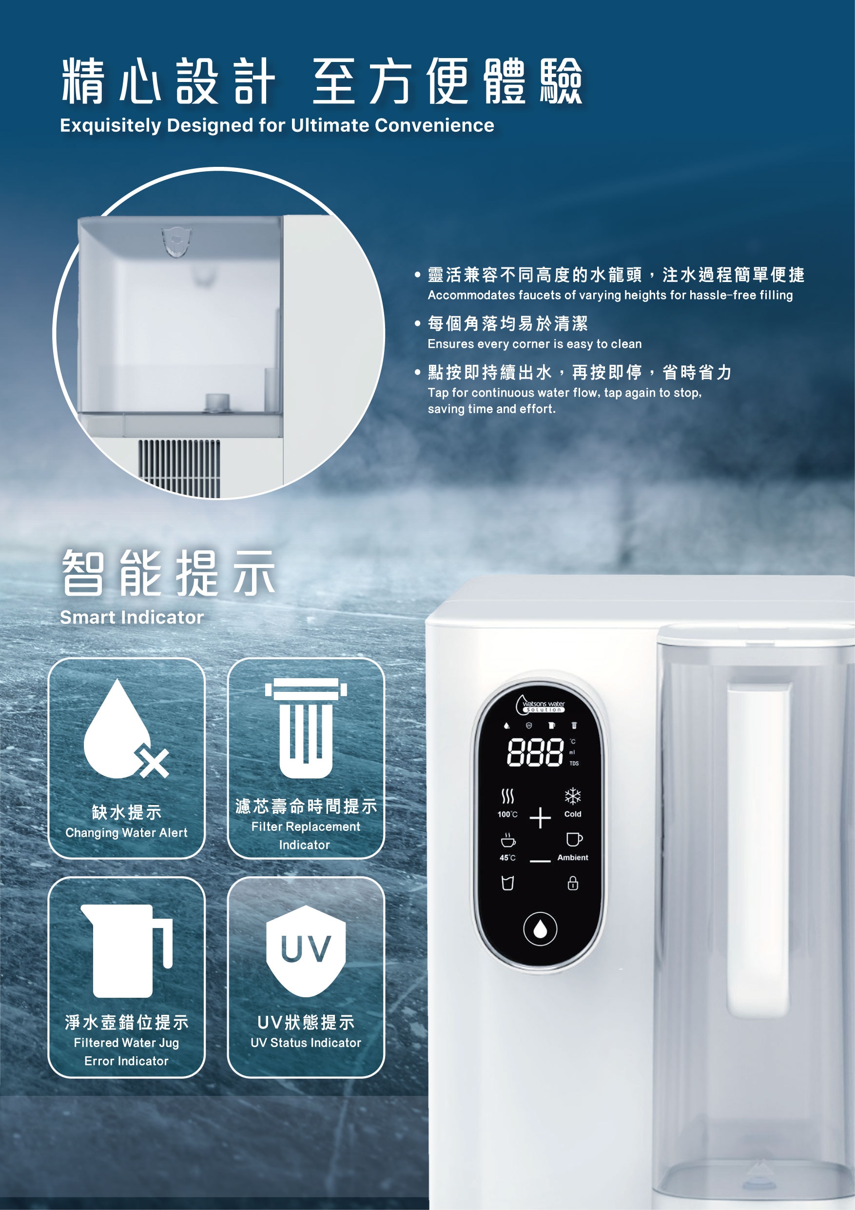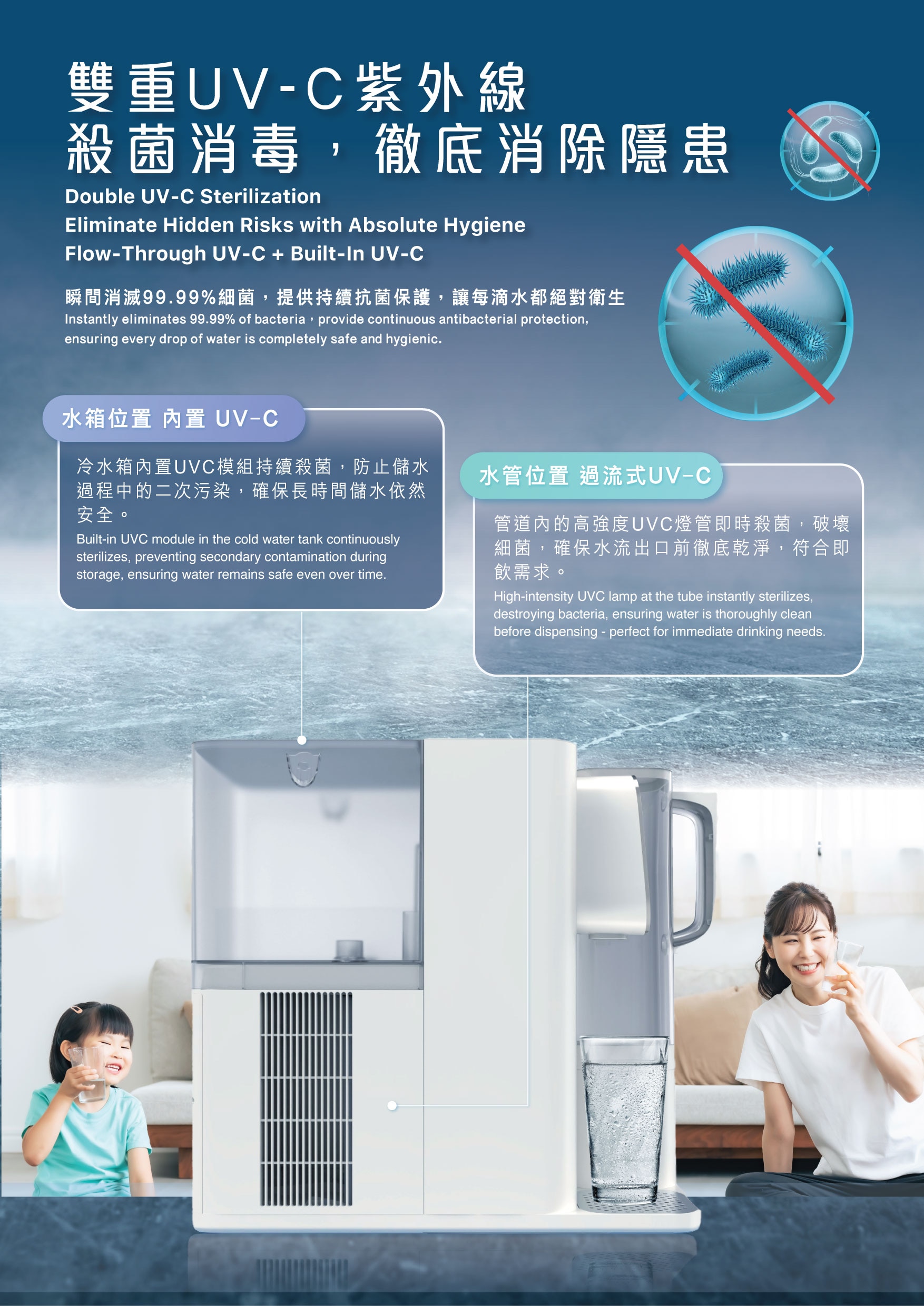 module in the cold water tank continuously sterilizes, preventing secondary contamination during storage, ensuring water remains safe and germ-free even over time.